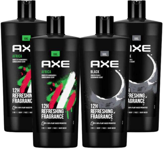 Az Axe Africa illata felkészít a következő egzotikus kalandodra. Felkelti a vad ösztöneidet. Az Axe tusfürdők hosszantartó illatukkal segítenek megőrizni a frissességet. A bőrgyógyászatilag tesztelt 3in1 tusfürdők különleges zuhanyzási élményt adnak. Használhatod őket testre, arcra és hajra egyaránt. Jellemzői: - Frissítő érzés - Egzotikus illat - 3in1: használd tes