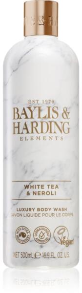 Baylis & Harding Elements White Tea & Neroli, 500 ml, Tusfürdők nőknek, A kényeztető Baylis & Harding Elements tusfürdő gél elengedhetetlenül hozzátartozik a mindennapi higiéniához. Gyengéden, mégis kímélően tisztítja és hidratálja a bőrt a teljes testfelületen. Tulajdonságok: lemossa a bőrt és eltávolítja a szennyeződéseket intenzíven hidratál lágyítja