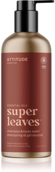 Attitude Super Leaves Bergamot & ylang-ylang, 473 ml, Tusfürdő és sampon 2in1 nőknek, A praktikus Attitude Super Leaves 2 az 1-ben tusfürdő és sampon gyorsan és hatékonyan tisztítja a bőrfelületet és a hajat. Tulajdonságok: nyugtató hatású ápolja az arcbőrt, a bőrt és a hajat intenzíven hidratál lágyítja és elasztikusabbá teszi a bőrt kisimítja a hajszálakat nyugt