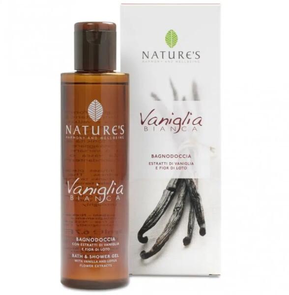 TestápolásNature's hab- és tusfürdő gél vaníliával és lótuszvirággal, 200 ml - A vaníliakivonat örömet áraszt, enyhíti a feszültséget és a fáradtságot- A kókusz felületaktív anyagai helyreállítják az egyensúlyt és finom hatásuknak köszönhetően a bőr frissen és selymesen éled újjá- A lótuszvirág kivonata tonizáló hatást fejt ki- Bőrgyógyászatilag- és n