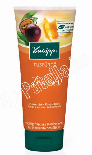 Kneipp Jókedv Aroma tusfürdő 200 ml. A Kneipp Jókedv aroma tusfürdő természetes éterikus maracuja- és grapefruit kivonatot tartalmaz. Gyengéden áploja a bőrt, a vidám egzotikus illat felüdülést nyújt és mosolyt varázsol az arcára. A termék előnyei:- Természetes éterikus maracuja és grapefruit kivonattal- Gyengéden ápolja a bőrt- Vidám illata jókedvre derítKiszerelés