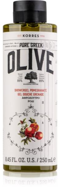 Korres Pure Greek Olive & Pomegranate, 250 ml, Tusfürdők nőknek, A kényeztető Korres Pure Greek Olive tusfürdő gél elengedhetetlenül hozzátartozik a mindennapi higiéniához. Gyengéden, mégis kímélően tisztítja és hidratálja a bőrt a teljes testfelületen. Tulajdonságok: lemossa a bőrt és eltávolítja a szennyeződéseket bársonyosan finommá és selymessé teszi a bőr