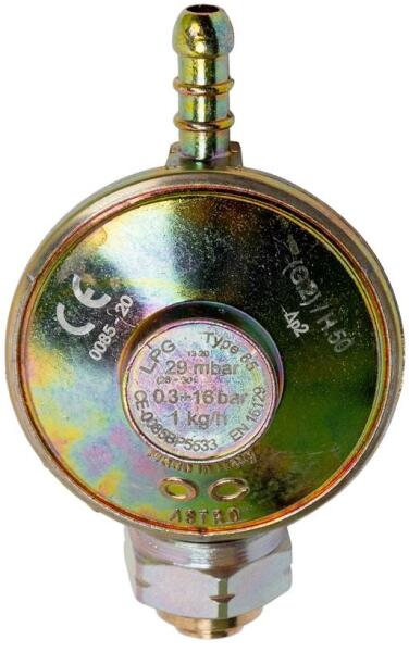 PROPÁN BUTÁN (PB)-GÁZ NYOMÁSCSÖKKENTŐ (reduktor) Prop n bután gáz nyomáscsökkentő jellemzői: PB- gáz nyomáscsökkentő belső menetes csatlakozóval Márka: OC ASTRO Típus: 65.30 Gáztípu s: Propán-bután Névleges kilépő nyomás: 30 mbar Névleges teljesítmény: 1,0 Kg/h ( 1.000 g/h) Belépő nyomás: 0,3-7,5 bar között A tömlővéges nyomáscsökkentő (reduktor) a házta