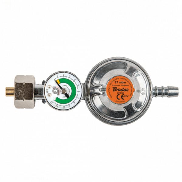 BRADAS GÁZ NYOMÁSSZABÁLYZÓ BIZTONSÁGI SZELEPPEL ÉS NYOMÁSMÉRŐVEL Bradas gáz nyomásszabályzó bitonsági szeleppel és nyomásmérővel 9-10 mm-es tömlőhöz Tömlőt a szövegre kattintva tud választani A gázszabályozó háztartási használatra készült, megfelel az EN16129 szabványnak. Bármilyen típusú, kézi nyitású és csatlakozású 21,8 x 1,14 literes szeleppel felsze