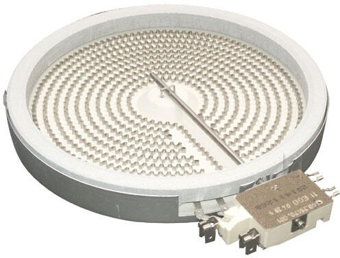 Egyáramú HiLight radiátor 1800 W (helyettesíti 1700 W), 230 volt - helyettesíti a verziókat a felső szonda furatával. Alternatív EGO 10.58113. 032 alkatrész, többek között BSH csoport / Bosch / Siemens. 00647881 Gorenje 554328 Amica 8001771 hőmérséklet- detektorral . A régi verziókat helyettesíti: lyukkal az edény érzékelőjéhez és a sugárzó fűtőberendezéshez, csökken
