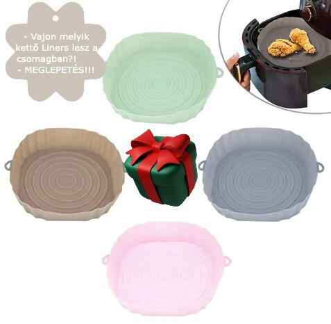 2 db Liners Air fryer ultra vékony sütőforma egy csomagban. A színe meglepetés színű. Lehet barna, szürke, rózsaszín vagy zöld. Liners ultra vékony sütőforma forrólevegős sütőkhöz -21 cm Készíts forrólevegős sütőkben olaj és zsiradék mentes ételeket könnyedén és letapadás mentesen ezzel a szilikonos sütőformával! Szilikon anyagának köszönhetően egyszerűen ki
