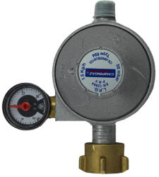 Szabályozó butánhoz és propánhoz, 1/4 balmenetes menettel, 1,5 kg áramlási sebességgel, beépített nyomásmérővel. Műszaki paraméterekprietok 1