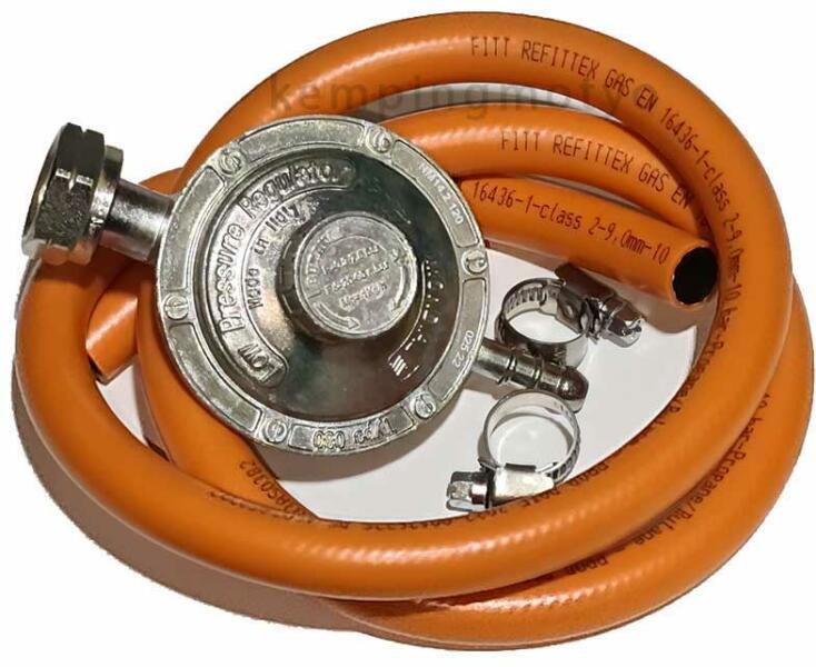 Nyomásszabályzó szett háztartási PB gázpalackról üzemelő gázkészülékekhez. A palack és a készülék összekötésére valamint a készülékhez szükséges gáznyomás biztosítására szolgál. 20-60 mBar nyomásra állítható1 kg/h áteresztőképességgelA szett tartalma:-1 db. nyomásszabályozó reduktor-1 m gáztömlő, -2 db bilincs Nyomászabályozó állítható, palackra