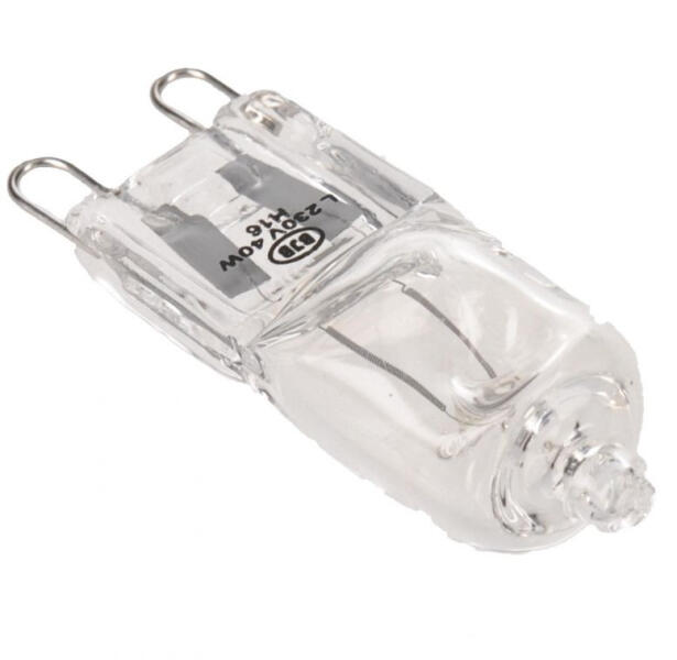 Energiahatékonysági (A++ = nagyon hatékony, E=kevésbé hatékony): D súlyozott energiafogyasztás: 40 kWh/1000h Fényáram: 490 lm Teljesítmény: 40 W átlagos névleges élettartam: 2000 h Szabályozható: igen A fény színe: Meleg fehér Színhőmérséklet: 2700 K Feszültség: 230V Foglalat: G9 Hossz: 43 mm Átmérő: 14 mm Tipus: halogén lámpa Használat: Sütő/ Tűzhely Csomagolás