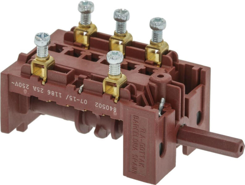 4 pozíció - tengely 23 mm - csap ø 6x4.6 mm | 250V, 25A, max hőmérséklet 150°C