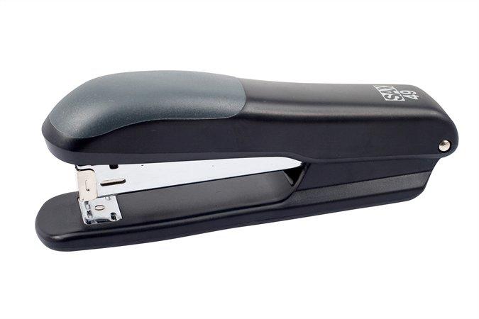Masszív, fém tűzőgép, műanyag borítással. Max 30 lap, tűzési mélység 52 mm. Hátranyitható fej, tűz-fűz-belő, egyszerű kapocsbetöltéssel. Beépített kapocskiszedője tárolja a kapcsot, mely így nem potyog el.