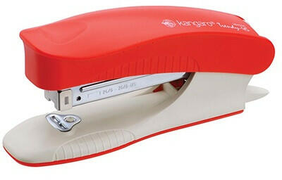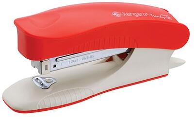 Tűzőgép KANGARO Trendy-45M asztali 15 lap 24/6 piros Pici, kompakt tűzőgép, műanyag kapocskiszedővel, felnyitható fejjel. Talpában 100 db kapocs tárolható. Tűzési kapacitás max 15 lap, tűzési mélység 30 mm. Hozzávaló kapocs: Kangaro 24/6, 26/6.