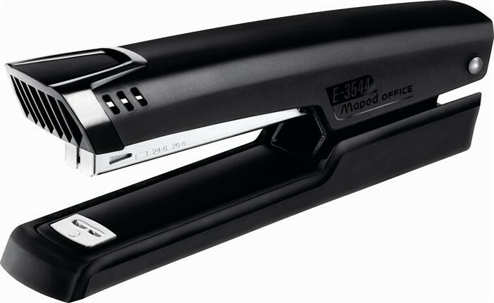 Tűzőgép, 24/6, 26/6, 25 lap, MAPED "Essentials Full-Strip", fekete fém test, fekete matt bevonat letisztult dizájn és célszerűség kombinációja csúszásgátló talp 180°-ban kihajtható tűző és szegező funkció tűzési mélység: 84 mm tűzőkapocs: 24/6, 26/6 5 év garancia