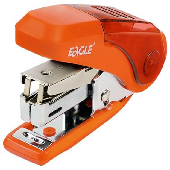 Tűzőgép EAGLE TYSS010 mini asztali 16 lap No 10 narancs Műanyag test, fém szerkezet, tűzési kapacitás: 16 lap, Tűzési mélység: 27 mm. Tűzőkapocs: No. 10. Zárt fűzés. 3 év garancia.