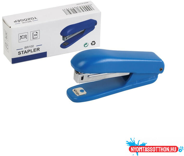 Tűzőgép, 10lap, NO. 10 BR100 Bluering® kék Fém szerkezetű tűzőgép, műanyag takaróelemekkel. Tűzés, fűzés funkció. No. 10 tűzőkapcsokhoz. Lapkapacitás: 10 lap. Tűzési mélység: 55mm 300db/karton;