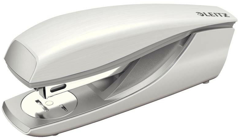 Tűzõgép stílusos fehér kivitelben, kiváló minõségű újrahasznosított műanyagból készül -asztali nagyteljesítményű tűzõgép -műanyag test újrahasznosított műanyagból, fém szerkezet -elöltõltõs, a nyomógomb benyomásával a tűzõgép kapocsadagolója elõrecsúszik, így gyorsan és egyszerűen újratölthetõ -állítható papírvezetõ -gumiborítású nyomófelület