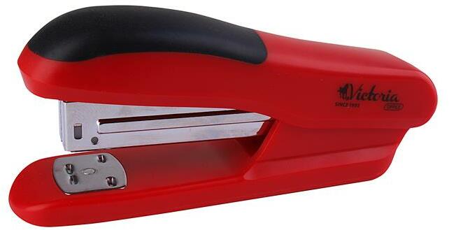 Tűzőgép, 24/6, 20 lap, VICTORIA OFFICE, "Half-Strip", piros -műanyag test -fémszerkezet -kapocs betöltése felülről -tűző-, fűző- és szegezőfunkció -tűzési mélység: 52 mm -kapacitás: 20 lap -megfelelő kapocsméret: 24/6