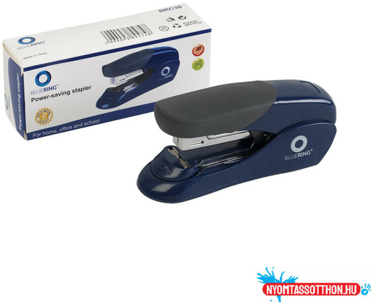 Tűzőgép 30lap 24/6 Flat Clinch lapos tűzés Bluering® BRC30 kék Fémszerkezetű tűzőgép. Műanyag takaróelemekkel, ergonomikus gumiborítású nyomófelülettel. Könnyített lapos tűzés, melynek köszönhetően az iratok kevesebb helyett foglalnak el. Beépített kapocskiszedő. 24/6 és 26/6 tűzőkapcsokhoz. Lapkapacitás: 30 lap. Tűzési mélység: 54 mm