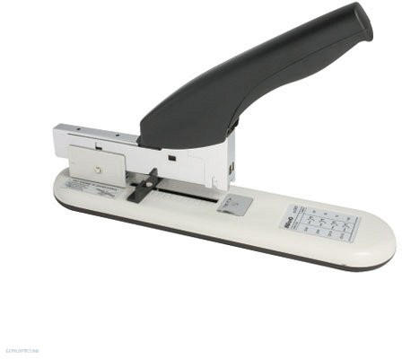 Nagy teljesítményű, karos fűzőgép. Ergonomikus fogórész, állítható fűzési mélység, csúszásgátló gumitalp. Fűzési mélység: max. 65 mm. Egyszerre fűzhető lapok száma kapocsmérettől függően: 23/6 kapoccsal - 2-30 lap 23/8 kapoccsal - 20-50 lap 23/10 kapoccsal - 40-70 lap 23/13 kapoccsal - 70-100 lap .