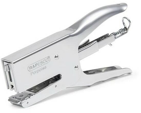 Rapesco Porpoise klasszikus tűzőgép, Ideális gyors tűzéshez és csomagoláshoz | kézi tűzőgép | fém test, fém szerkezet | hátultöltős, újratölteni a hátsó rugó benyomásával, illetve kiakasztásával lehet | lapkapacitás: 6 mm: 20 lap, 8 mm: 45 lap | tűzőkapocs: 26/6, 26/8, 24/6, 24/8 | ajándék tűzőkapocs: nem | méret: 175 mm x 22 mm x 92 mm | garancia: 15 év