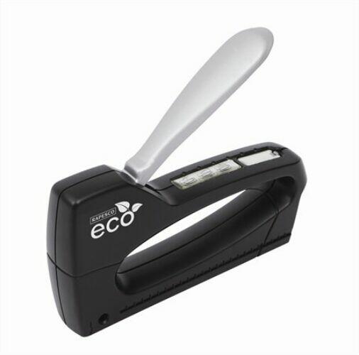 A Rapesco ECO tűzőpisztoly kiváló minőségű termék, amely ötvözi a modern formatervezést, de újrahasznosított műanyagot használ. Erőteljes, kompakt kialakítás, ideális otthoni, kézműves, hobbi, irodai és oktatási célokra is-kézi tűzőpisztoly -műanyag test újrahasznosított műanyagból, fém alkatrészek-lezárható tűzőkar-feliratozható névtábla-alsó tűzőkapocs