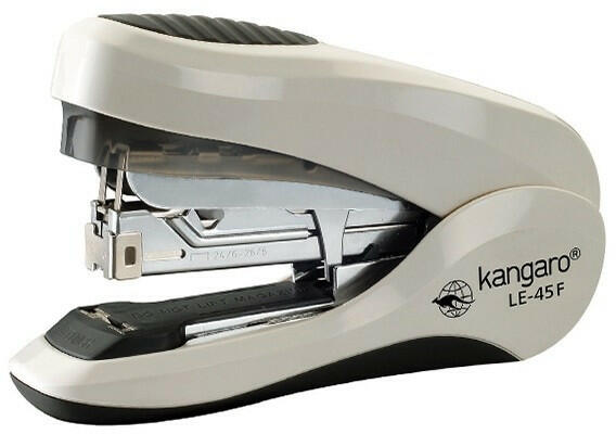 Tűzőgép KANGARO Less-45F asztali 25 lap 24/6 csontfehér Elegáns és nagyon hatékony tűzőgép. A Less Effort technológia lehetővé teszi a tűzést minimális erőkifejtéssel (-45%). A Flat Clinch, lapos tűzésnek köszönhetően helyet takarít meg az iratrendezőkben. Fém tűzőszerkezet, műanyag borítású bordázott gumi tűzőkar, csúszásmentes talp, könnyű kapocsbetöltés.