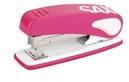 Fémszerkezetű fűzőgép ergonomikus nyomófelülettel. Használható kapocsméretek: 24/6, 26/6. Egyszerre összefűzhető lapok száma max. 25 lap. Fűzési mélység max. 63 mm. Keresse a színben hozzáillő SAX design lyukasztógépeket is!