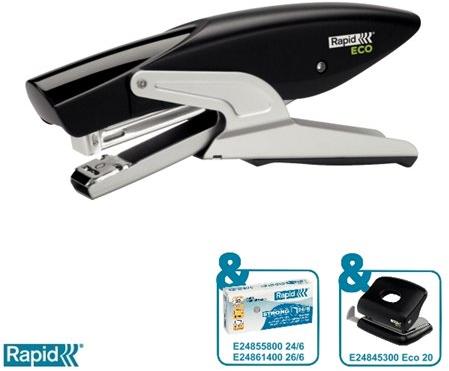 Környezetbarát, mini tűzőgép 100%-ban újrahasznosított kommunális műanyag hulladékból, újrahasznosított karton csomagolásban. Max. tűzési kapacitás: 10 lap (80 g-os) 24/6 és 26/6 méretű Rapid Standard tűzőkapcsokhoz. 5 év garancia Rapid tűzőkapcsok használata esetén. .