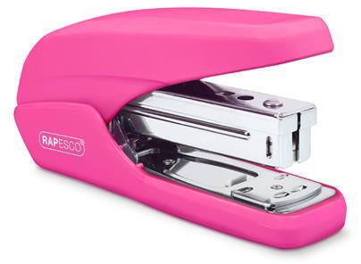 Tűzőgép, 24/6, 26/6, 25 lap, könnyített tűzés, RAPESCO "X5 Less Effort", pink Praktikus kiegészítője minden asztalnak! -asztali tűzőgép -műanyag test, fém szerkezet -felültöltős -tűzőkapocs: 26/6, 24/6 -ajándék tűzőkapocs: nem -csökkentett erőkifejtés: 60%-kal kevesebb erőkifejtést igényel -méret: 120 mm x 34 mm x 78 mm -garancia: 15 év