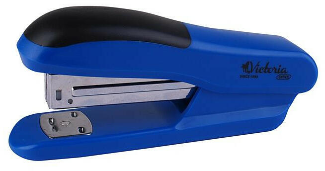 Tűzőgép, 24/6, 20 lap, VICTORIA OFFICE, "Half-Strip", kék -műanyag test -fémszerkezet -kapocs betöltése felülről -tűző-, fűző- és szegezőfunkció -tűzési mélység: 52 mm -kapacitás: 20 lap -megfelelő kapocsméret: 24/6