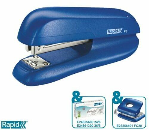 Tűzőgép, 24/6, 26/6, 25 lap, fém, RAPESCO "Bowfin Half-Strip", kék - IRR53500L2 - 24/6-os tűzőgépek 30 lapig - Praktikus kiegészítője minden asztalnak! -asztali tűzőgép -fém test, fém szerkezet -felültöltős -gumiborítású nyomófelület -csúszásmentes gumita