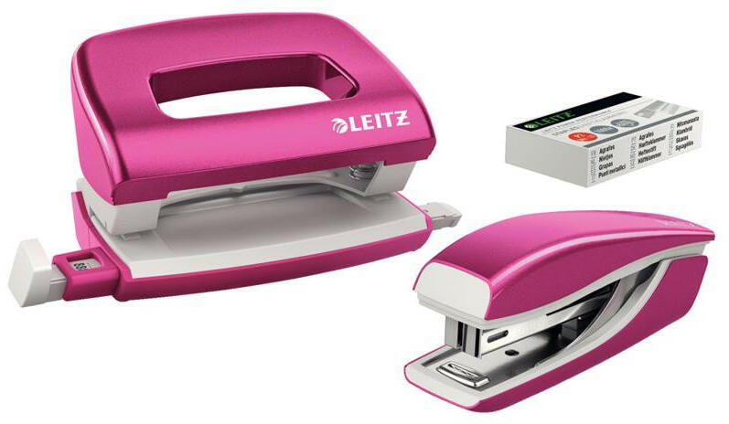 Kisméretű, fém tűzőgép és lyukasztó szett ragyogó WOW színekben, melyek kihangsúlyozzák személyiségedet. Max. tűzési és lyukasztási kapacitás: 10 lap (80 g-os). Ergonomikus, kézreálló forma irodai, otthoni és iskolai használathoz. Lyukasztó: mélyített markolat a kézben történő lyukasztáshoz. Könnyen a kívánt méretre állítható, erős távtartó a pontos lyukas