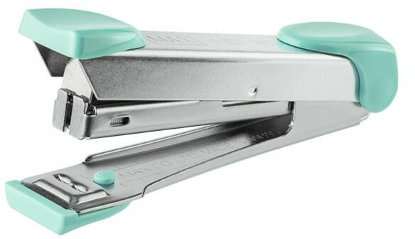 Tűzőgép MAX HD-10 asztali 20 lap No. 10 pasztell zöld Krómacél testű, színes ujjpárnájú tűzőgép, beépített kapocskiszedővel. Szétnyitott állapotban alkalmas a hajlítás nélküli tűzés („szegelés) funkcióra (plakát, fénykép, dekorációk rögzítésére fa, vagy gipszkarton falfelületre). Tűzési mélység: 53 mm Áttűzhető lapszám: 2-20 lapig Kapocs: No. 10-1M A