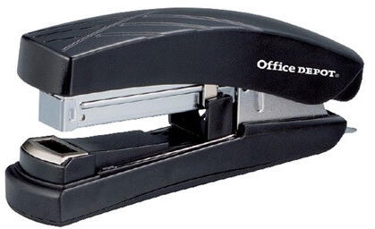 Office Depot 30 flat-clinch fekete/kék fűzőgép - 24/6 vagy 26/6-os fűzőkapoccsal műkődő, fém testű, gumírozott fogórésszel ellátott fűzőgép - Egyszerre fűzhető lapok száma: 30 - A Flat-Clinch, laposfűzés technológiának köszönhetően akár 30%-kal csökken az összefűzött iratok terjedelme - Szín: fekete/kék
