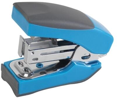 Kis méretű, fémszerkezetű tűzőgép, trendy világoskék színben. Műanyag takaróelemekkel, ergonomikus gumiborítású nyomófelülettel. Beépített kapocskiszedő. 24/6 és 26/6 tűzőkapcsokhoz. Lapkapacitás: 15 lap Tűzési mélység: 27 mm Katalóguskód: 2514