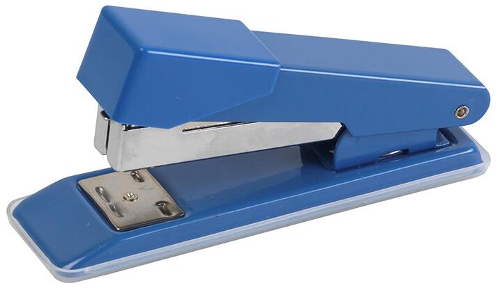 TŰZŐGÉP 24/6 20 LAPHOZ KÉK BR200 KÉK Fémszerkezetű tűzőgép. Műanyag takaróelemekkel, ergonomikus gumiborítású nyomófelülettel. Tűzés, fűzés funkció. 24/6 és 26/6 tűzőkapcsokhoz. Lapkapacitás: 20 lap. Tűzési mélység: 55 mm 120db/karton Katalóguskód: 2190