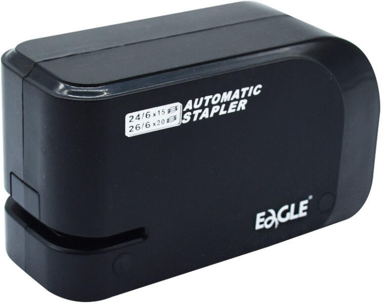 Elektromos tűzőgép, adapterrel (tartozék) és 4 db AA elemmel (nem tartozék) is működtethető. 24/6 és 26/6 tűzőkapcsokhoz. Lapkapacitás: 20 lap Katalóguskód: 7693 TŰZŐGÉP ELEKTROMOS 20LAP 24/6 EG1610 EAGLE + ADAPTERREL Gyártó : Eagle