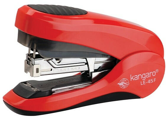 Tűzőgép KANGARO Less-45F asztali 25 lap 24/6 piros Elegáns és nagyon hatékony tűzőgép. A Less Effort technológia lehetővé teszi a tűzést minimális erőkifejtéssel (-45%). A Flat Clinch, lapos tűzésnek köszönhetően helyet takarít meg az iratrendezőkben. Fém tűzőszerkezet, műanyag borítású bordázott gumi tűzőkar, csúszásmentes talp, könnyű kapocsbetöltés. „By