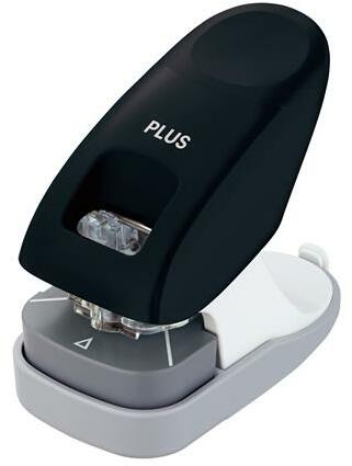 Kapocs nélküli tűzőgép, asztali, 10 lap, PLUS, fekete - PLUS31236 - Speciális tűzőgépek - Könnyed és praktikus tűzés, csak helyezze be a dokumentumokat az iratmegsemmisítőbe anélkül, hogy a kapcsokat el kellene távolítani! -akár 10 papírlap rögzítése kapc
