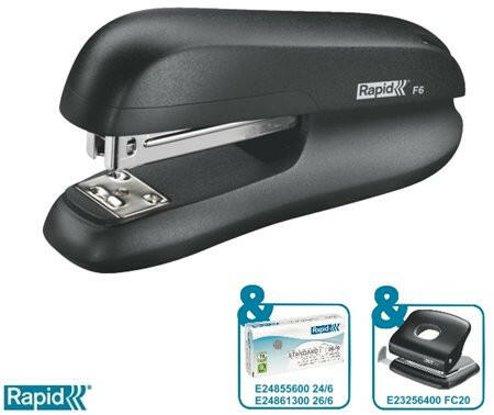 Tűzőgép, 24/6, 26/6, 20 lap, RAPID "F6", fekete - könnyen használható, erős, féltáras tűzőgép fém szerkezettel - kapacitás: 20 lap - tűzési mélység: 50 mm - javasolt kapocs: Rapid 24/6 és 26/6 Rapid tűzőkapcsokhoz (E24855600 / E24861300) - alkalmas zárt, nyitott és U-alakú tűzésre - kényelmes utántöltés a felültöltős szerkezettel - 5 év garancia Rapid tűzőkapcso