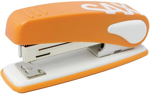 Sax Design narancssárga fűzőgép Fémszerkezetű Fűzőgép ergonomikus nyomófelülettel. Használható kapocsméretek: 24/6, 26/6. Egyszerre összefűzhető lapok száma max. 25 lap. Fűzési mélység max. 63 mm. Keresse a színben hozzáillő SAX Design Lyukasztógépeket is!