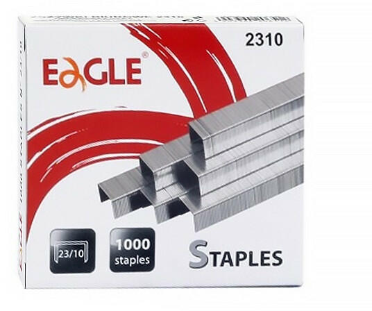 Tűzőkapocs EAGLE 23/10 1000/dob 23/10-es, horganyzott tűzőkapocs. Tűzési kapacitása: 30-70 lap, 10 doboz/gyűjtő csomagolásban.
