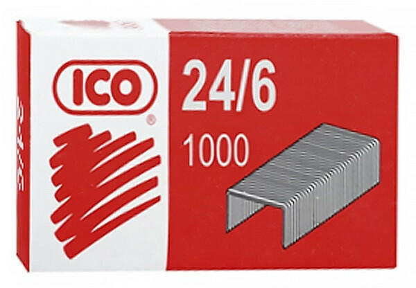 Tűzőkapocs ICO 24/6 24/6-os horganyzott fűzőkapocs. 10 doboz/gyűjtő csomagolásban.