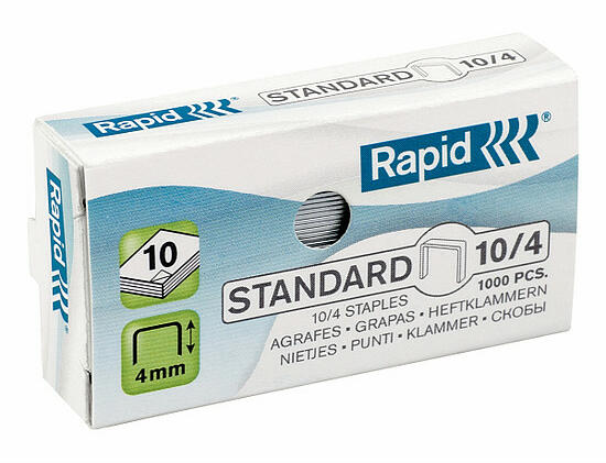 Rapid STANDARD galvanizált tűzőkapcsok többféle méretben, Rapid garanciával. A gyártási technológia garantálja a minimum 6 mm-es kapocslábat, ezzel a 20 lap garantált kapacitást.