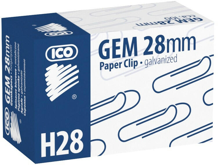 GEMKAPOCS 28MM H28 100DB ICO 28 mm-es, horganyzott, kerekített gemkapocs. 100 doboz/gyűjtő kiszerelésben. Katalóguskód: 1198