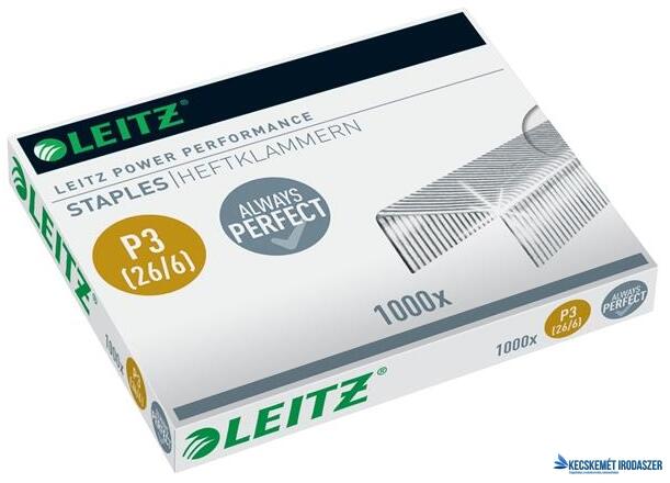 - 26/6 méretű, erős, acél tűzőkapocs - használja Leitz tűzőgépekkel az optimális teljesítmény érdekében! - max. tűzési kapacitás: 30 lap (80 g-os) - 10 év garancia a Leitz tűzőgépekre Leitz tűzőkapocs használata esetén - 6...