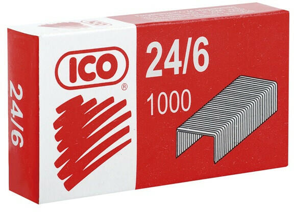 TŰZŐKAPOCS 24/6 ICO PIROS DOBOZOS Bármilyen, 24/6 kapoccsal működő tűzőgéphez Gyűjtő: 10 doboz Horganyzott fűzőkapocs. Mérete: 24/6 - 11,5x6 mm. Katalóguskód: 17937