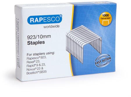 Tűzőkapocs, 923/10, horganyzott, RAPESCO Prémium minőségű anyagokból, szigorú szabványok szerint készült Rapesco kapcsok optimális teljesítményt nyújtanak a legpontosabb tűzéshez -erősített tűzőkapocs -megbízható minőség -galvanizált finomhuzal a könnyű és kényelmes használatért -bármilyen, az adott méretű kapoccsal működő tűzőgéphez -lapkapacitás: 30-65 l