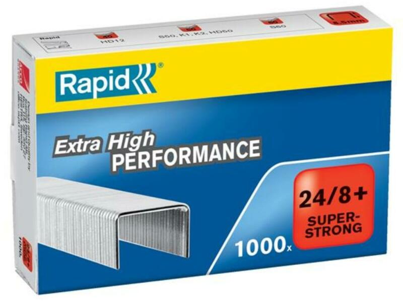 Tűzőkapocs, 24/8+, horganyzott, RAPID Superstrong (E24858500) - szupererős huzalból készült tűzőkapcsok a pontos tűzés érdekében, 50 lapig - 2-50 lap tűzéséhez (80 g-os papír) - SUPERSTRONG (extra erős) tűzőkapocs, melyet a csomagoláson piros szín jelöl - 8,5 mm szárhossz - galvanizált, szupererős huzal a legobb teljesítményért - éles szárak pontos tűzés érdekében