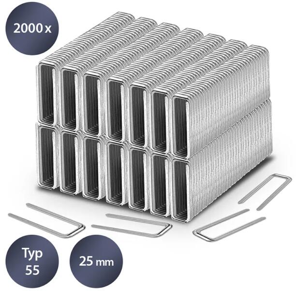 Az 55-ös típusú finomhuzalos kapcsok szélessége 6 mm, a láb hossza 25 mm.